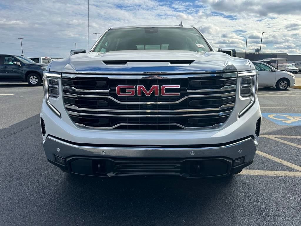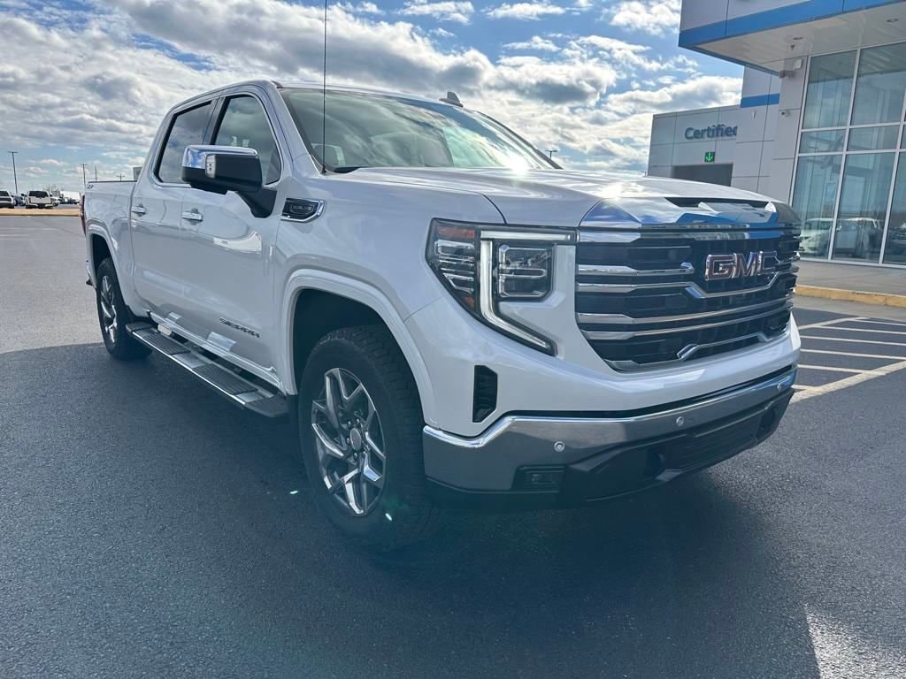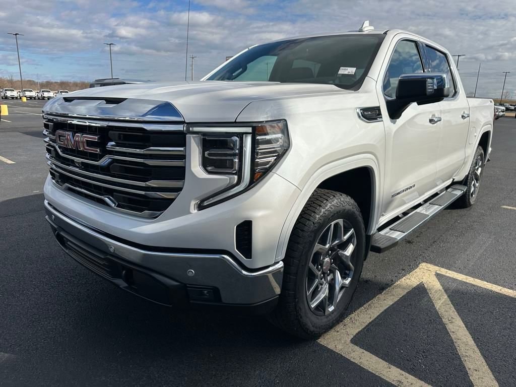 Free Service Pickup and Delivery available within 75 miles. White Frost Tricoat 2025 GMC Sierra 1500 SLT 4WD 10-Speed Automatic EcoTec3 5.3L V8 10-Speed Automatic, 4WD, Jet Black Leather.