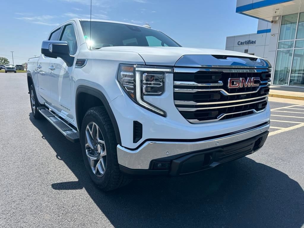 Free Service Pickup and Delivery available within 75 miles. Summit White 2025 GMC Sierra 1500 SLT 4WD 10-Speed Automatic EcoTec3 6.2L V8 10-Speed Automatic, 4WD, Black Leather.