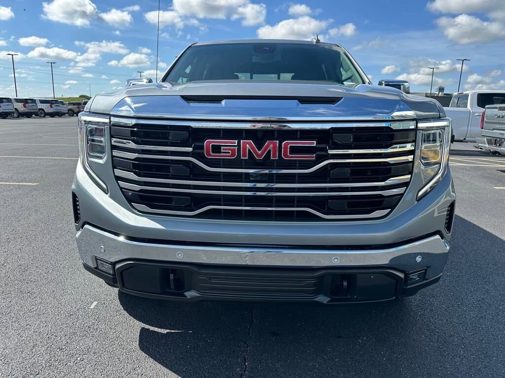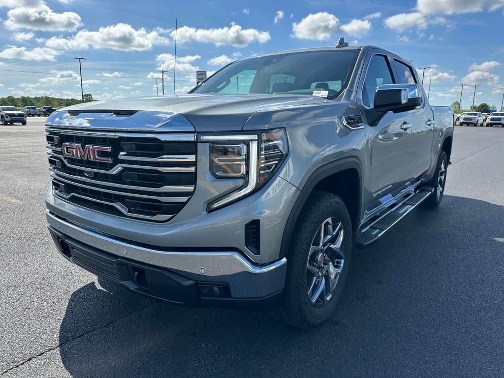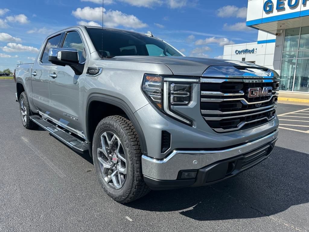 Free Service Pickup and Delivery available within 75 miles. Sterling Metallic 2025 GMC Sierra 1500 SLT 4WD 10-Speed Automatic EcoTec3 5.3L V8 10-Speed Automatic, 4WD, Black Leather.
