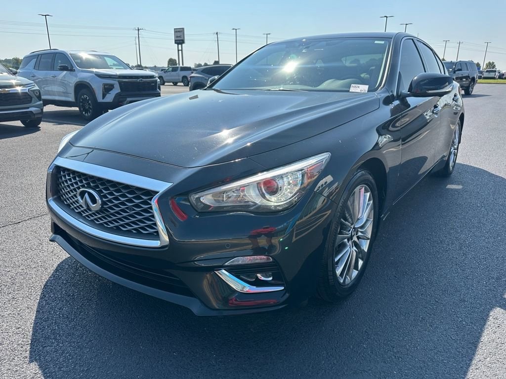 Priced below KBB Fair Purchase Price! Odometer is 2681 miles below market average! George Kell Motors is proud to present you with another True Market Priced Pre-Owned Vehicle. This 2021 INFINITI Q50 3.0t LUXE is loaded with the following Factory Options:Cargo Package (Cargo Net, First Aid Kit, Shopping Bag Hooks, and Trunk Mat), 18 x 7.5 Aluminum Alloy Wheels, 4-Wheel Disc Brakes, 6 Speakers, ABS brakes, Air Conditioning, Alloy wheels, AM/FM radio: SiriusXM, Apple CarPlay/Android Auto, Auto High-beam Headlights, Auto-dimming Rear-View mirror, Automatic temperature control, Blind Spot Warning, Brake assist, Bumpers: body-color, CD player, Compass, Delay-off headlights, Driver door bin, Driver vanity mirror, Dual front impact airbags, Dual front side impact airbags, Electronic Stability Control, Emergency communication system, Four wheel independent suspension, Front anti-roll bar, Front Bucket Seats, Front Center Armrest, Front dual zone A/C, Front fog lights, Front reading lights, Fully automatic headlights, Garage door transmitter: HomeLink, Heated door mirrors, Heated Front Bucket Seats, Heated front seats, Heated steering wheel, Illuminated entry, Leather Shift Knob, Leather steering wheel, Leatherette Seating Surfaces, Literature Kit, Low tire pressure warning, Occupant sensing airbag, Outside temperature display, Overhead airbag, Overhead console, Panic alarm, Passenger door bin, Passenger vanity mirror, Power door mirrors, Power driver seat, Power moonroof, Power passenger seat, Power steering, Power windows, Premium Paint, Radio data system, Radio: INFINITI InTouch w/AM/FM/HD/CD, Rain sensing wipers, Rear anti-roll bar, Rear reading lights, Rear seat center armrest, Rear USB Charging Ports, Rear window defroster, Remote keyless entry, Security system, Speed control, Speed-Sensitive Wipers, Splash Guards, Split folding rear seat, Steering wheel mounted audio controls, Tachometer, Telescoping steering wheel, Tilt steering wheel, Traction control, Trip computer, Turn signal indicator mirrors, and Variably intermittent wipers.